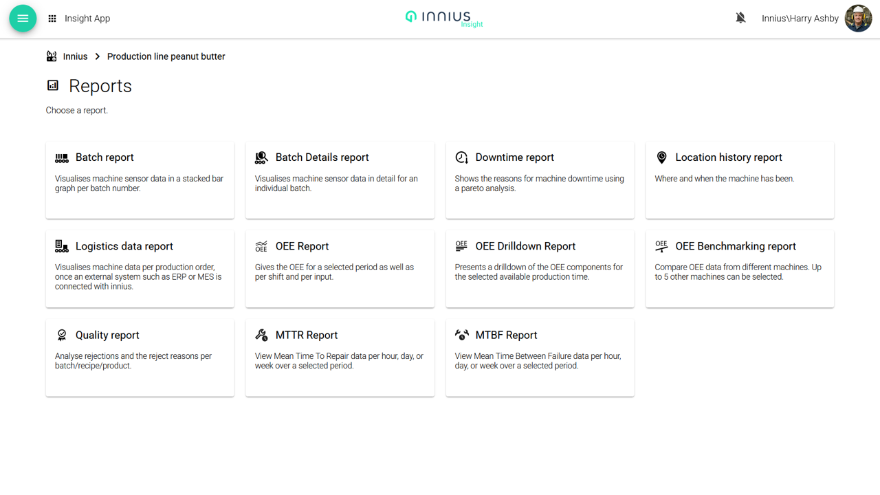 For each machine there is a selection of reports available. Those reports can be accessed by clicking on the Report (1) button.