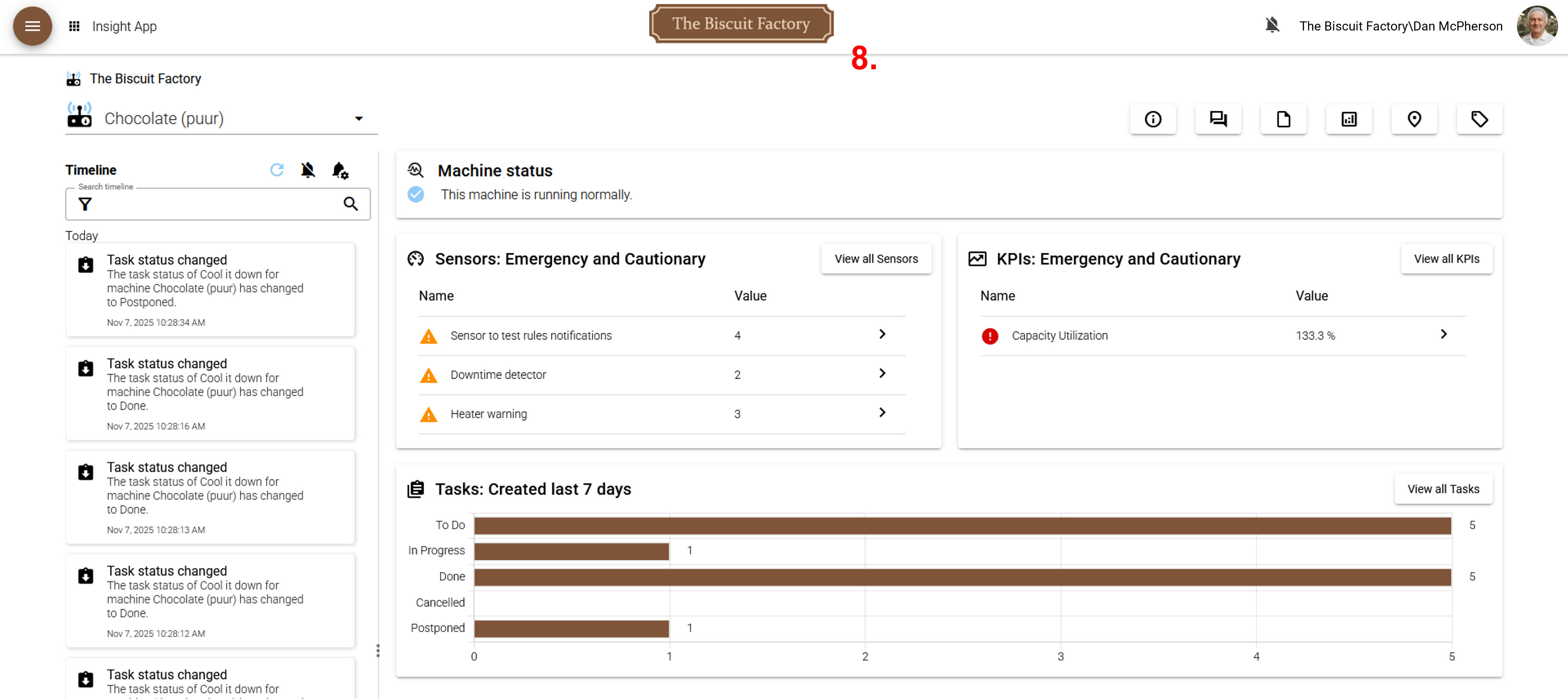 Here you see in the Insight app, how the Insight app logo has been replaced (8.) with the uploaded logo, and the hex color has been applied as a highlight color.