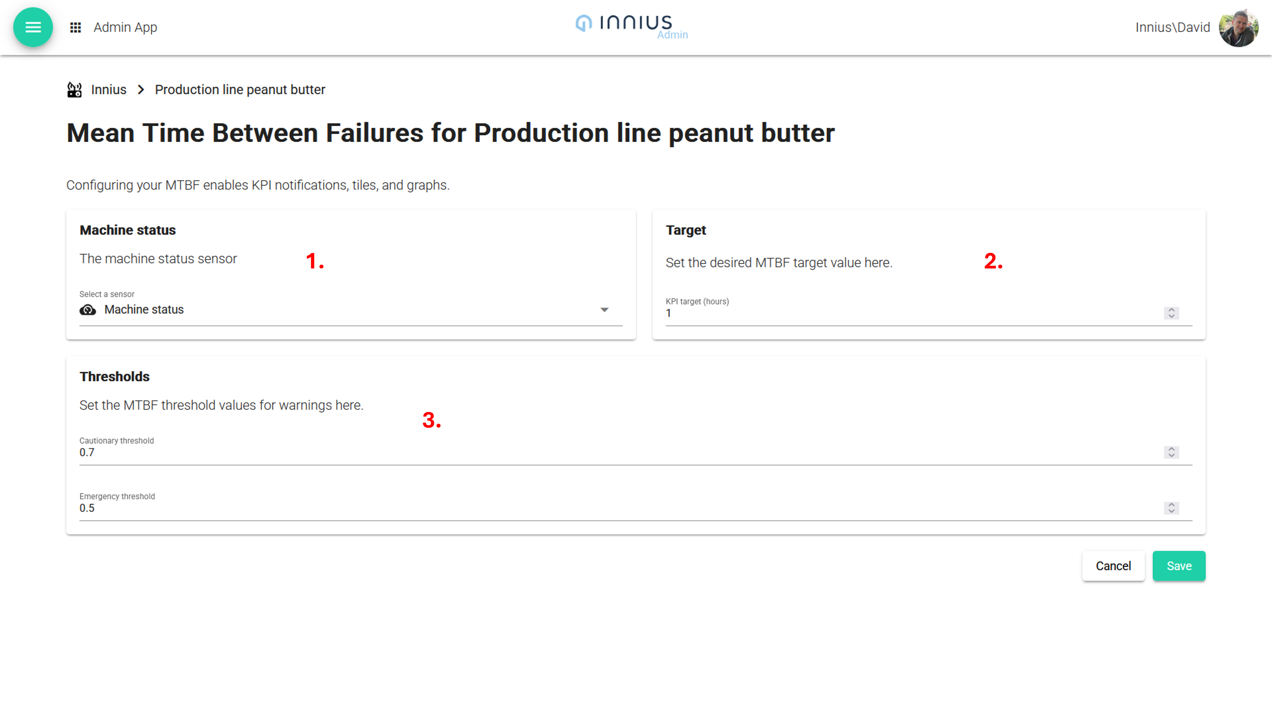 2. The target panel allows you to define an ideal target value for your MTBF.